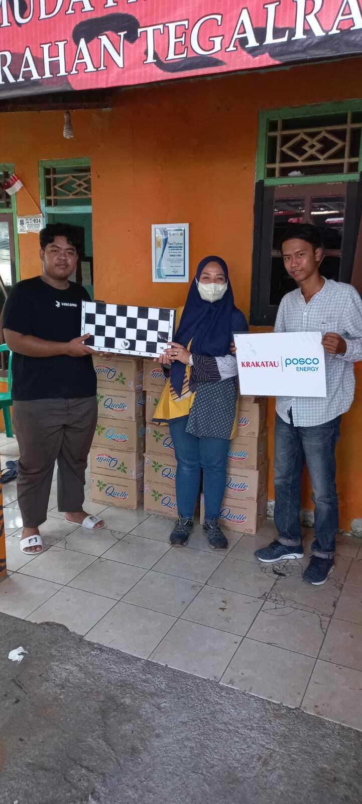 Cilegon (15/08) - In 2022, Republic of Indonesia celebrates its 77th Independence Day. All Indonesians rejoice in celebrating the independence day and for commemorating this, PT Krakatau Posco Energy support the continuity of community service activities in the form of providing bottled drinking water boxes and chessboards to support the August 17 event for Kubang Sari Village and Tegal Ratu Village.