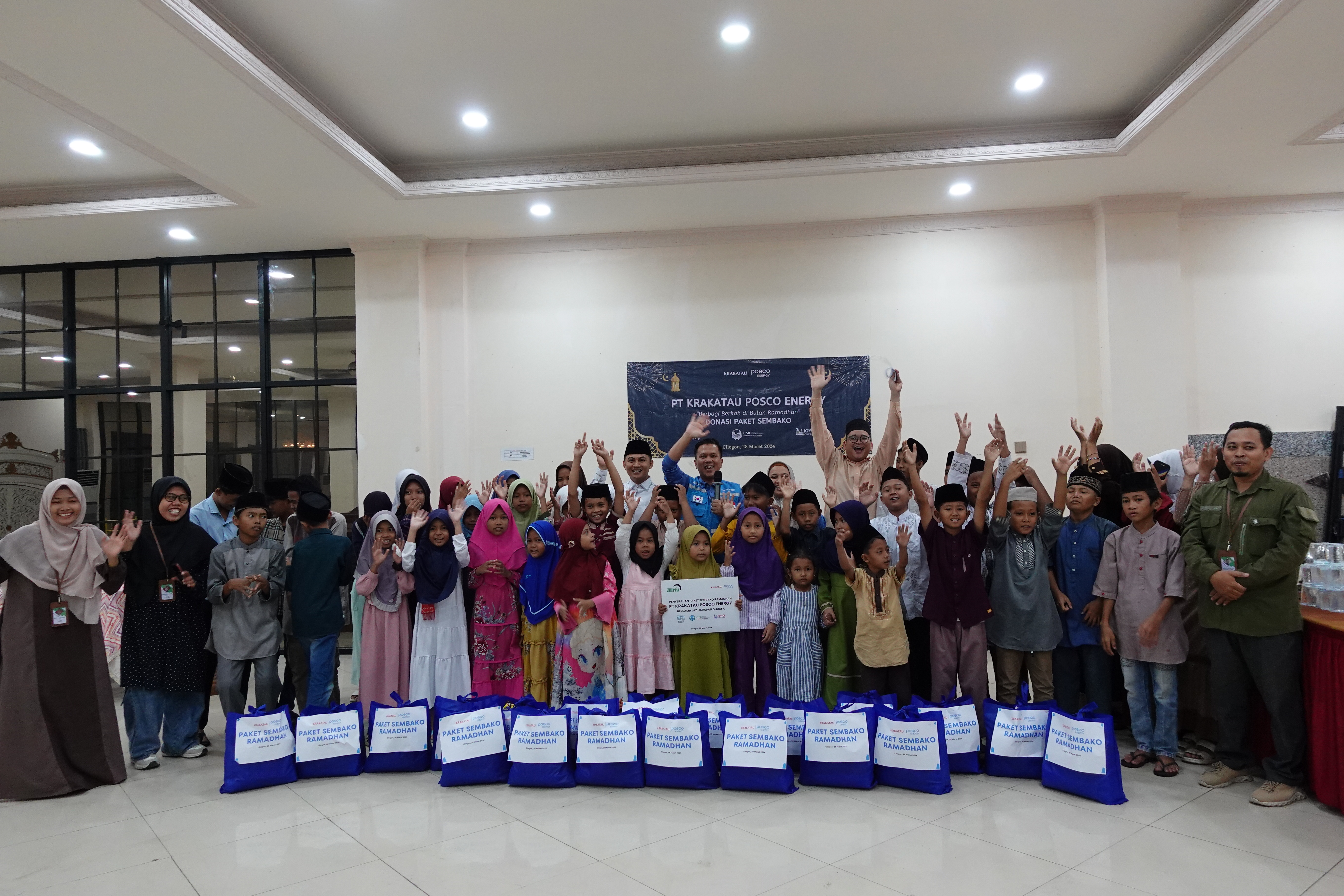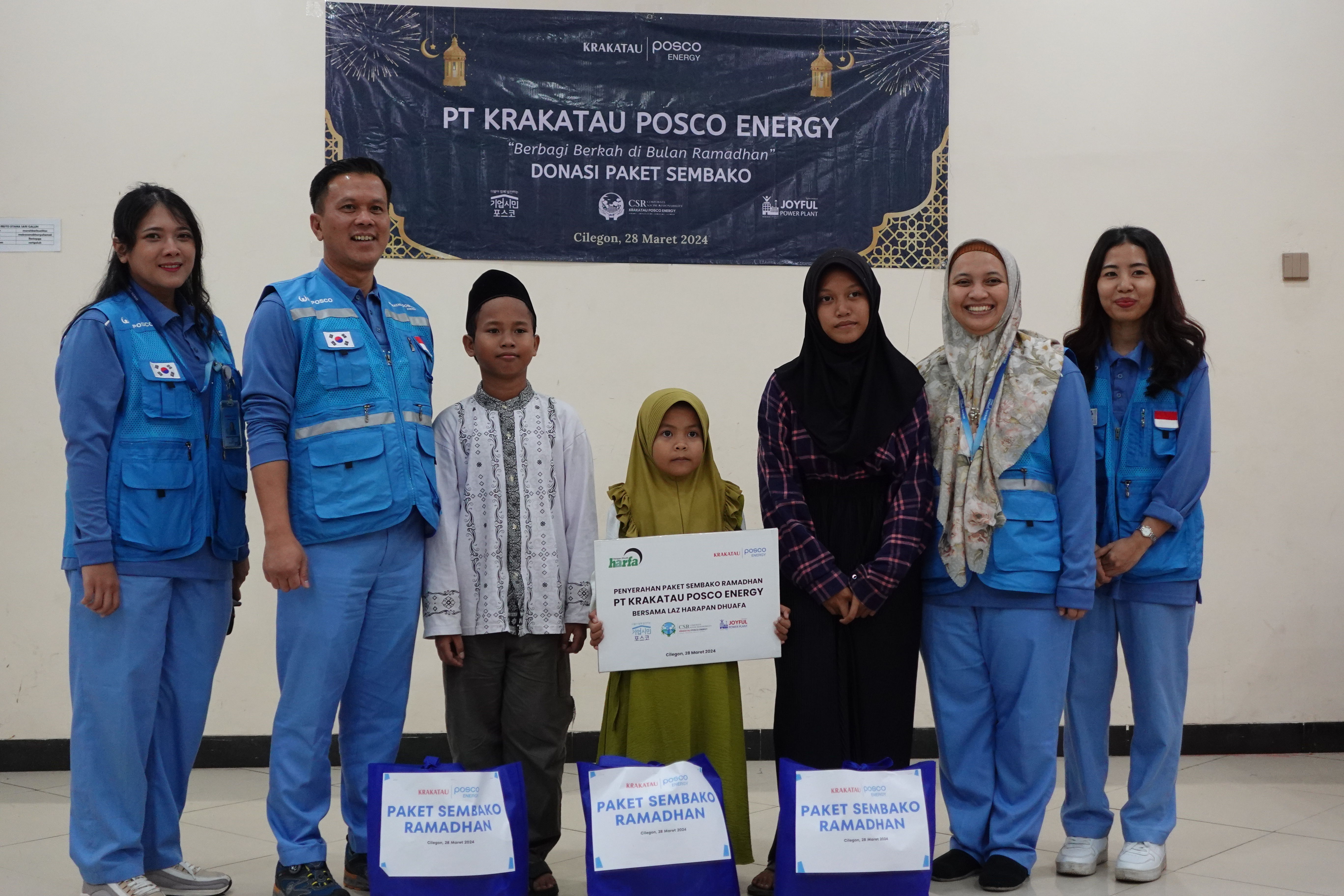 Cilegon (28/03) – In the spirit of Ramadan, PT Krakatau Posco Energy distributed 40 daily staples to orphans and underprivileged families in the company’s Ring 1 areas specifically Samangraya, Kubangsari, and Tegalratu.